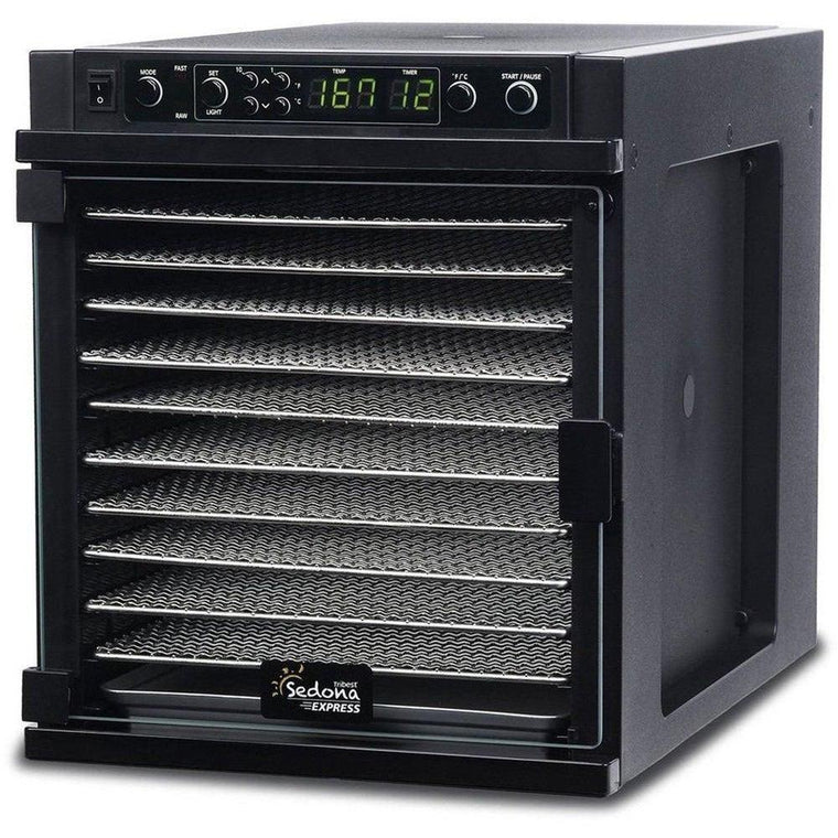 The Tribest Sedona Express is a full-featured dehydrator with a compact, kitchen-friendly design. The Sedona Express Models have 3 operational modes to efficiently and effectively dehydrate your food; from fruits and vegetables to meats and crackers.