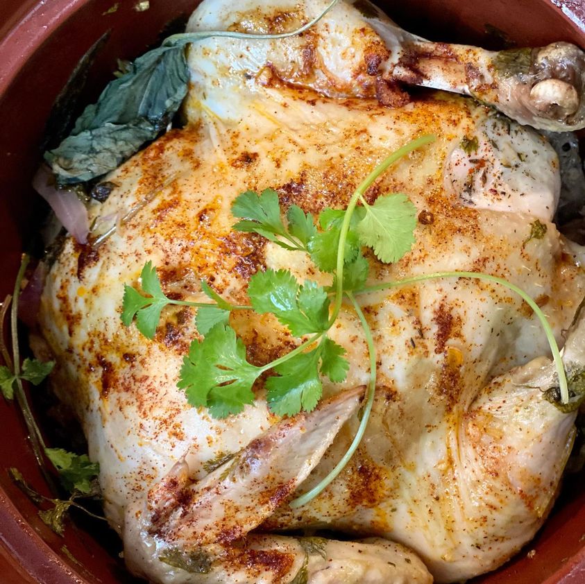 The unglazed clay bowl naturally releases food, making cleanup simple. Most dishes clean easily with warm water and a soft sponge — no harsh scrubbing or chemicals needed.